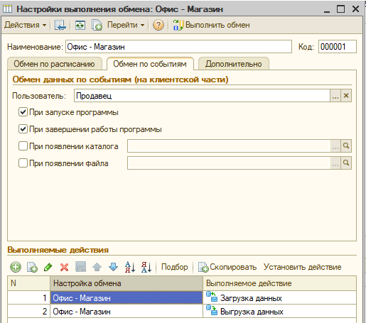 Кто давно работает с 1С, тот должен помнить, что в конфигурациях прошлого поколения, работавших на платформе 8.2, в настройках синхронизации была возможность выполнять обмен по событиям, например, запуск и завершение работы программы. Это позволяло реализовать простые сценарии работы для удаленных торговых точек, когда программа гарантированно получала перед началом рабочего дня все необходимые изменения и отправлять в центральную базу итоги работы за день.
