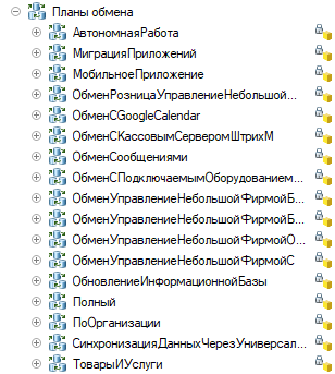 Прежде всего определимся, как определить план обмена, самый верный способ - посмотреть в конфигураторе. Для примера показаны планы обмена УНФ 1.6
