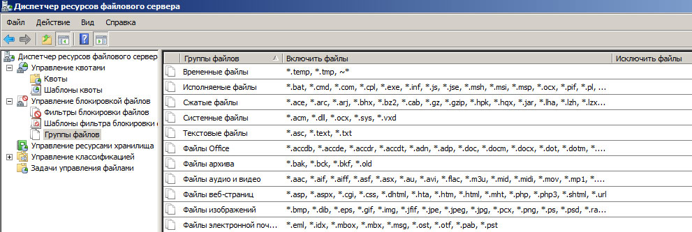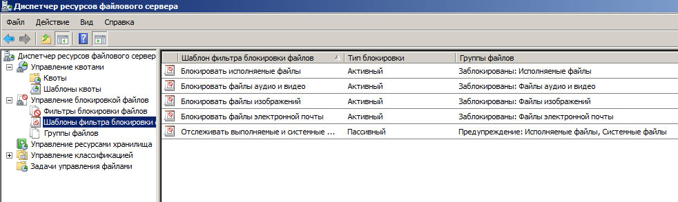 Разобравшись с квотами, перейдем к блокировке файлов. Не секрет, что пользователи хранят на общих ресурсах и то, что надо и то, что не надо, в частности очень любят размещать там коллекции фото, видео, музыки, причем часто не ограничиваясь одной папкой, а растаскивая одно и тоже содержимое по массе папок. В результате дисковое пространство стремительно сокращается, а у администратора появляется еще одна головная боль. Можно, конечно, бороться административными мерами, но как показывает практика - это малоэффективно.