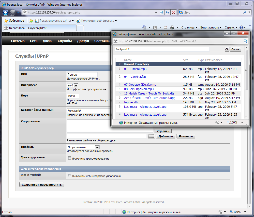 База данных формируется в момент добавления папок по их текущему содержимому и, к сожалению, веб интерфейс не имеет инструментов для ее обновления при добавлении / удалении/ перемещении файлов. Поэтому обязательно поставьте галочку Включить интерфейс управления в пункте Web-интерфейс. Он будет доступен по адресу http://адрес_накопителя:49152, несмотря на то, что интерфейс английский, разобраться в нем несложно, опций - необходимый минимум.