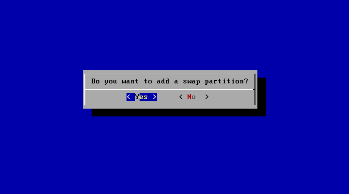 Соглашаемся с предложенным разбиением диска и прочими параметрами установки, единственное значение, которое потребуется изменить, это запрос на создание раздела подкачки. По умолчанию он не создается, поэтому отвечаем на запрос положительно и указываем размер раздела, установщик предлагает размер равный размеру оперативной памяти, в большинстве случаев с этим стоит согласиться.