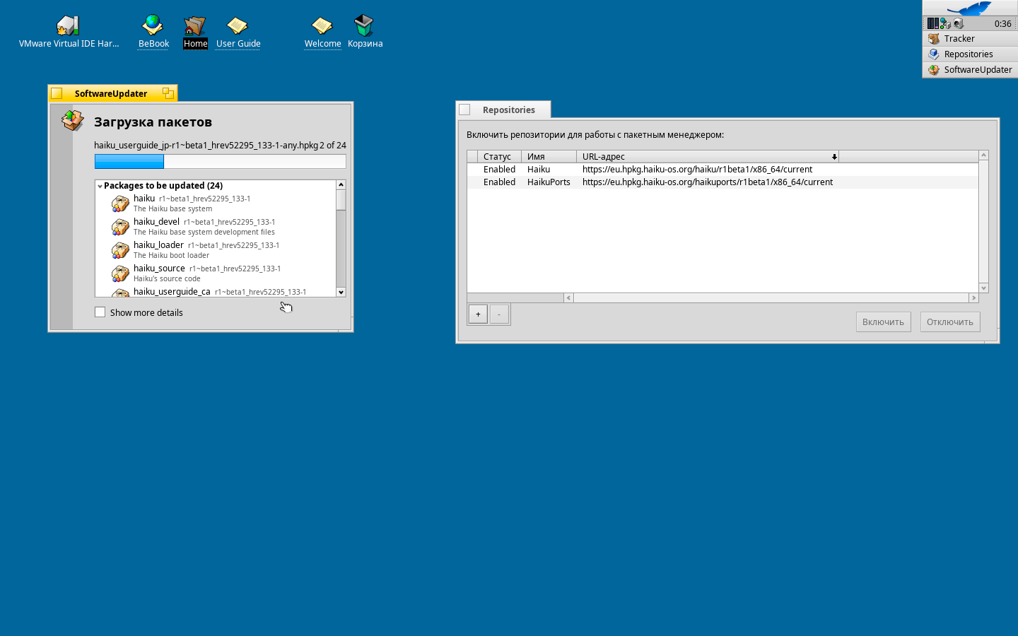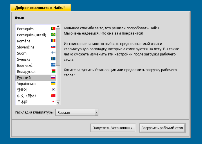 Каких-либо затруднений установка не вызывает и происходит достаточно быстро. Встречает нас также достаточно узнаваемое оформление, тщательно следующее традициям BeOS.