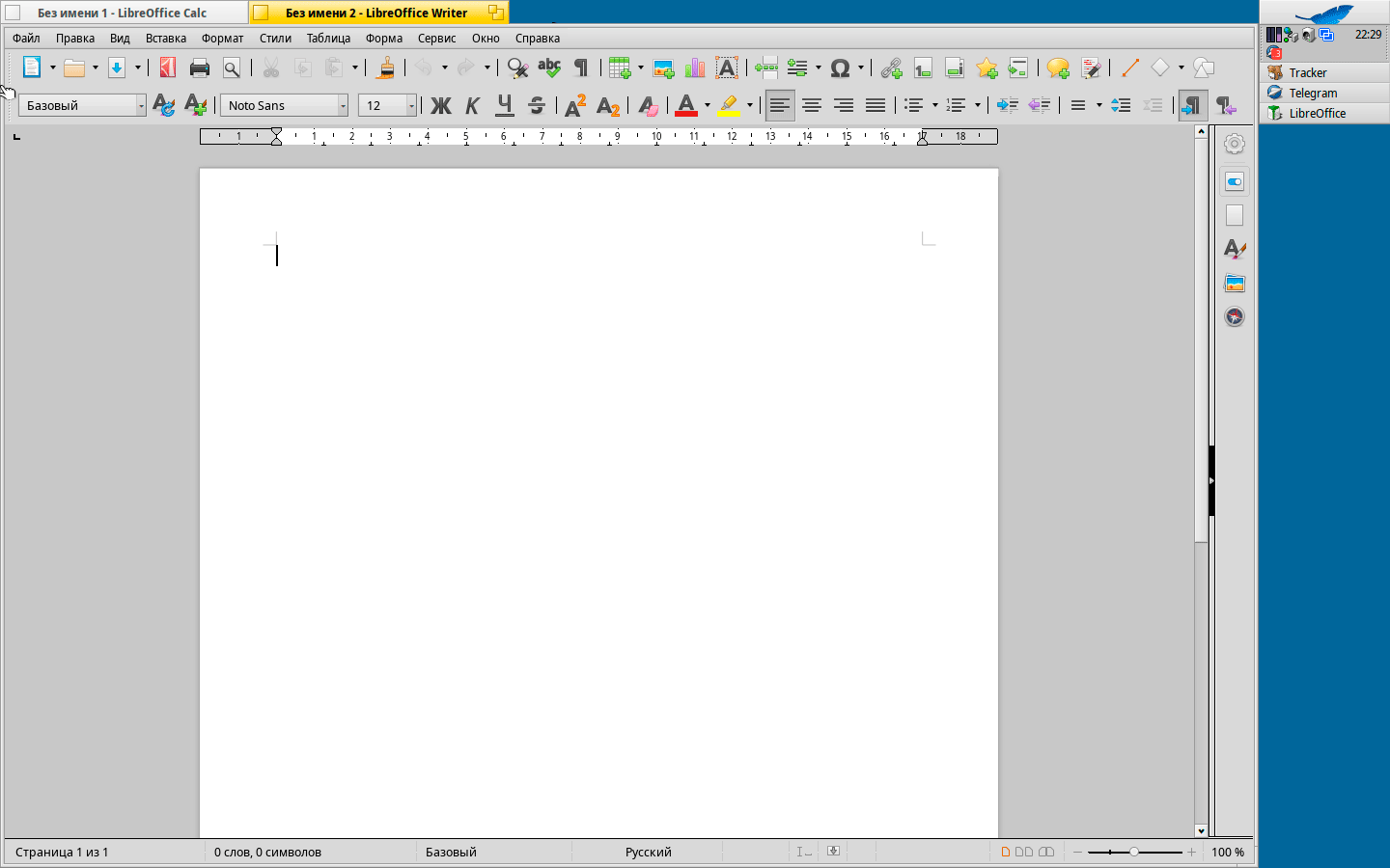 Здесь же мы столкнулись с несколько необычным поведением пользовательского интерфейса, когда мы захотели запустить второй экземпляр LibreOffice, то привычным образом, через стартовое меню нам сделать это не удалось, система переключала нас на уже запущенное окно. Для создания нового экземпляра приложения потребовалось создать новый документ через меню Файл самого приложения. Это неудобно и противоречит уже устоявшемуся пользовательскому опыту в других системах.