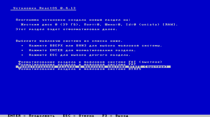 Текстовый этап установки сменяет графический, в полном соответствии с оригиналом, для чего так сделано - непонятно, тем более что по заверениям разработчиков ReactOS полностью независимая от Windows система. Или цель не двоичная совместимость, а полное копирование первоисточника?