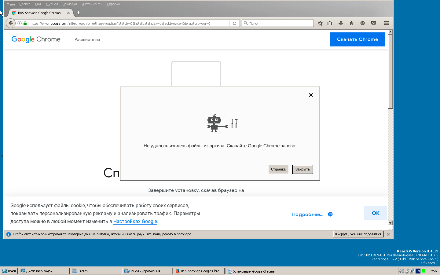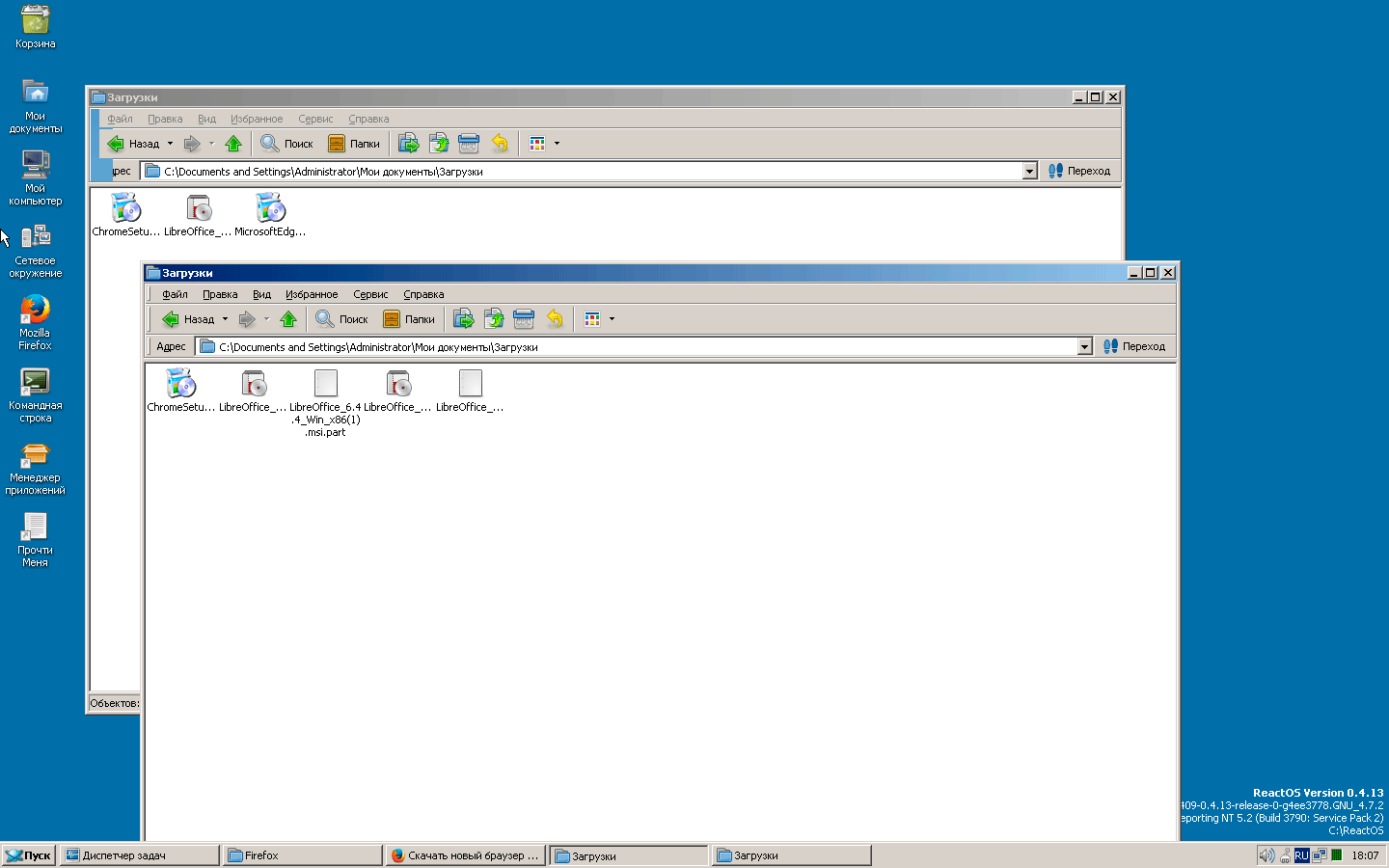 Действительно, Firefox обновился, но до еще одной древней версии, а всему виной здесь текущая совместимость ReactOS c NT 5.2, т.е. уровнем давно снятых с поддержки Windows XP и Server 2003 со всеми вытекающими. В 2020 году это даже уже не смешно, а очень и очень печально.