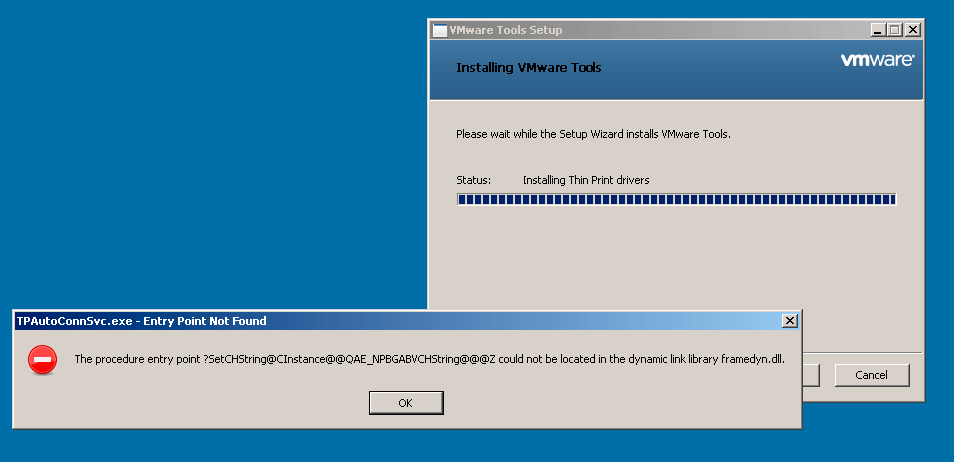 Может быть попробуем установить VMWare Tools для Server 2003? Ведь заявлена бинарная совместимость с драйверами. Уже в процессе установки мы поняли, что это затея обречена на провал.