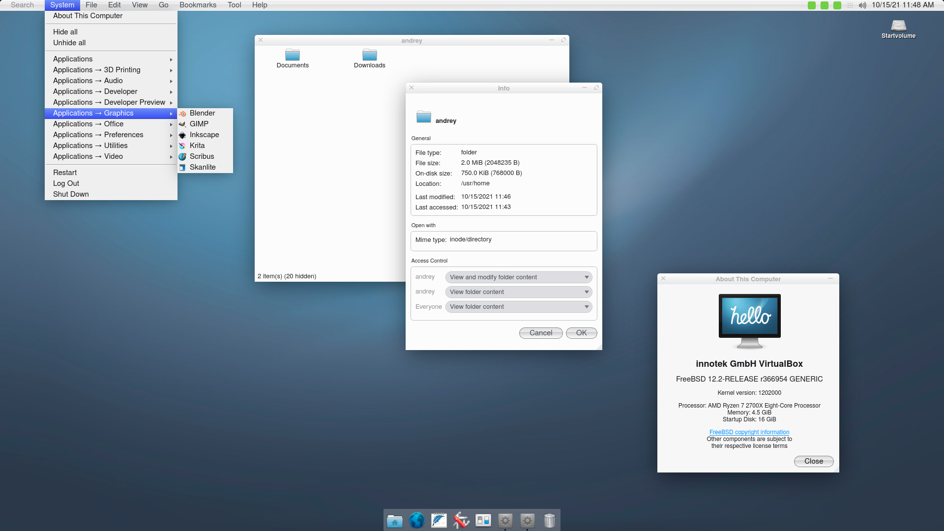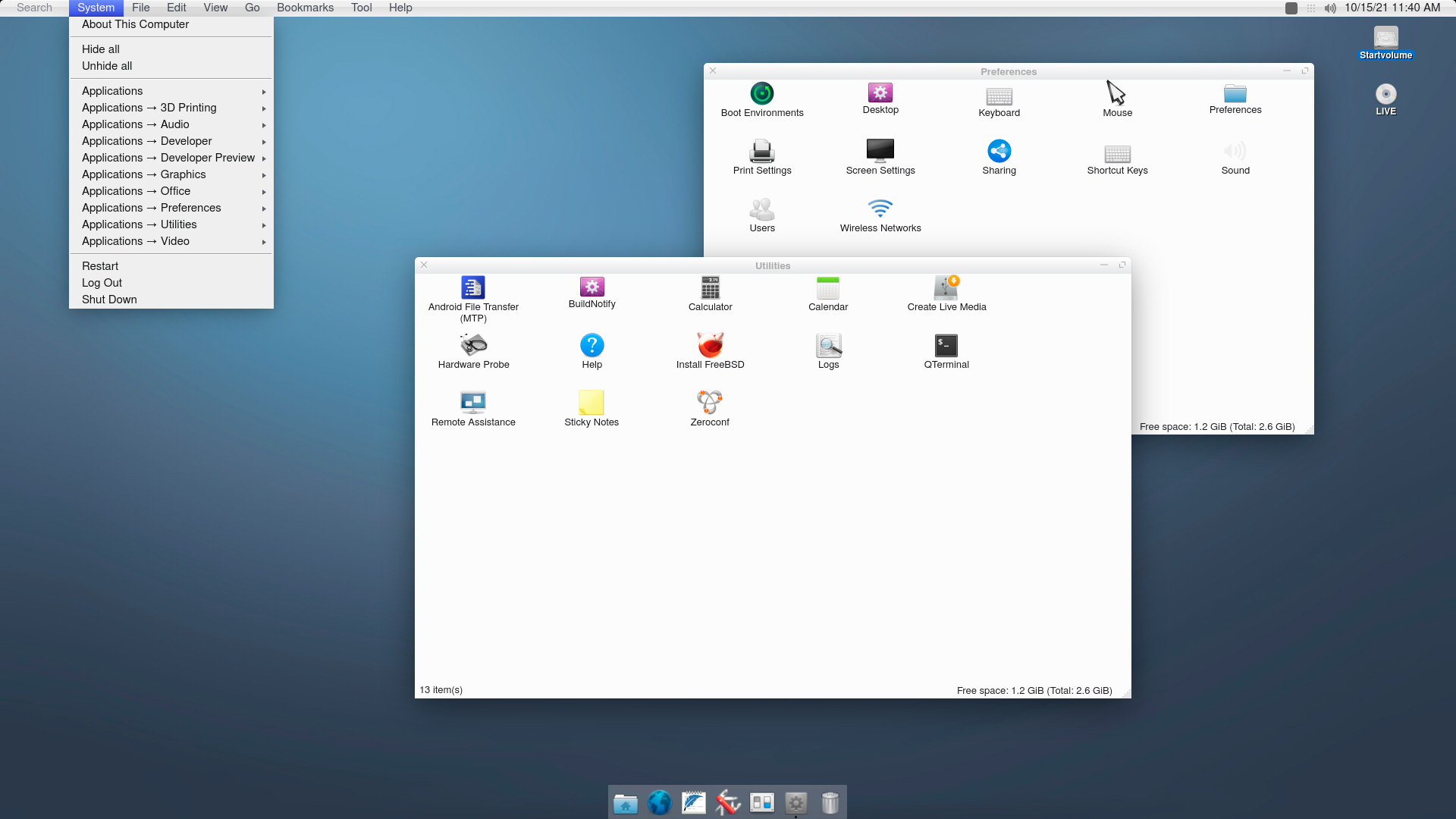 Установленная система мало чем отличается от живого диска, разве что работает с большей отзывчивостью. Под капотом данной версии находятся FreeBSD 12.2, ZFS и оконный менеджер KWin, на который проект перешел с использовавшегося ранее Openbox.