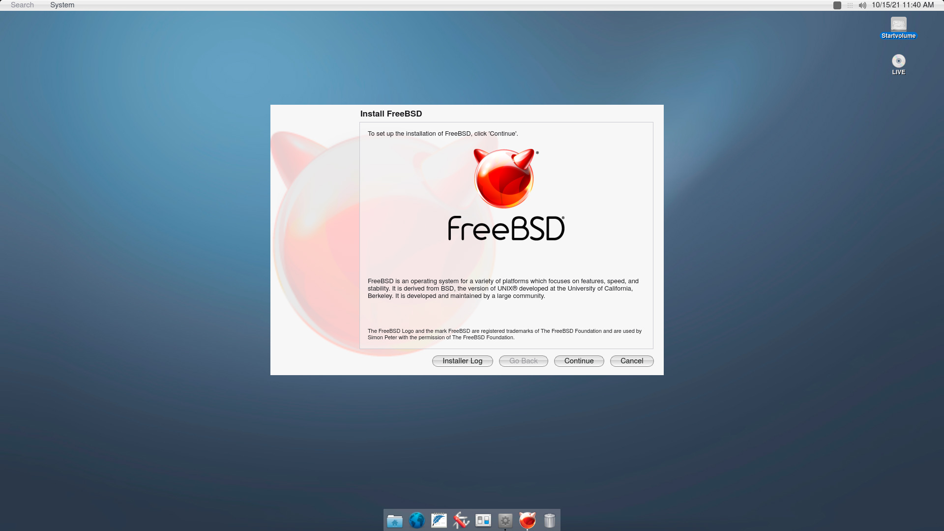 В принципе можно продолжить знакомство с helloSystem в режиме LiveCD, но мы решили установить его на диск, для этого следует воспользоваться пунктом Install FreeBSD в разделе Utilites. Никакого брендирования здесь нет, что может сначала ввести в заблуждение, но данный пункт установит на ваш компьютер именно helloSystem.