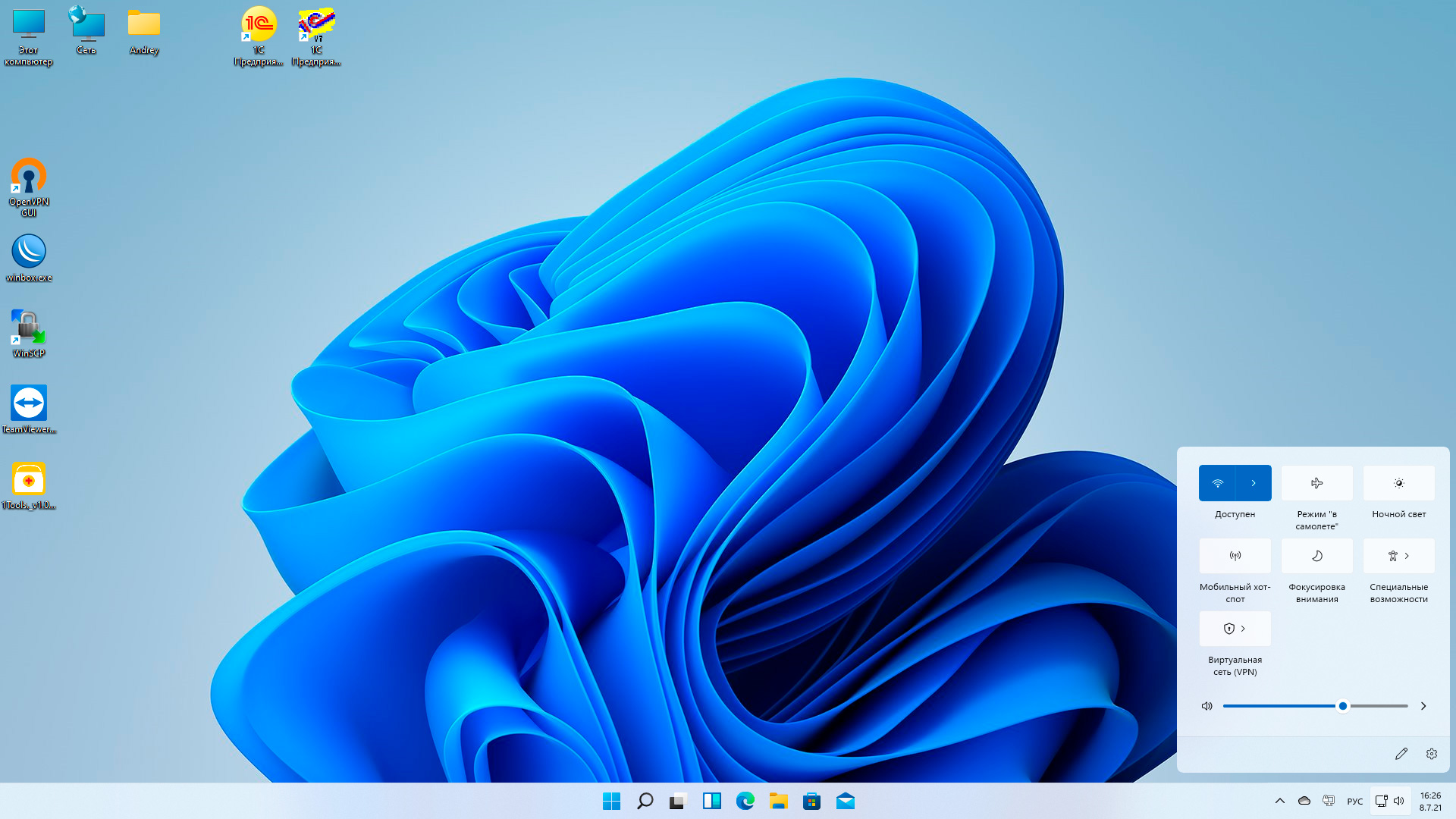 Область уведомлений на Панели задач стала лучше, пропала перегруженность и это большой плюс, но количество действий для доступа к отдельным пунктам увеличилось, например, к беспроводным или VPN-подключениям, хотя исправить ситуацию довольно легко - следует дать возможность закреплять на панели уведомлений не группы, а отдельные значки, но пока такой возможности нет.