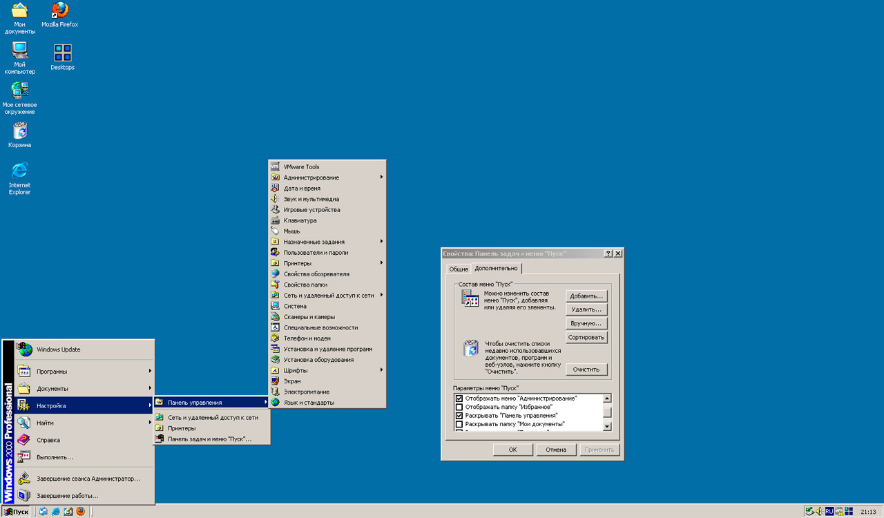 Меню Пуск позволяло быстро перейти к программам, недавним документам или настройкам, не отвлекаясь от работы и не сворачивая основное окно программы. Единственно доступные настройки - это добавление или удаление элементов меню.