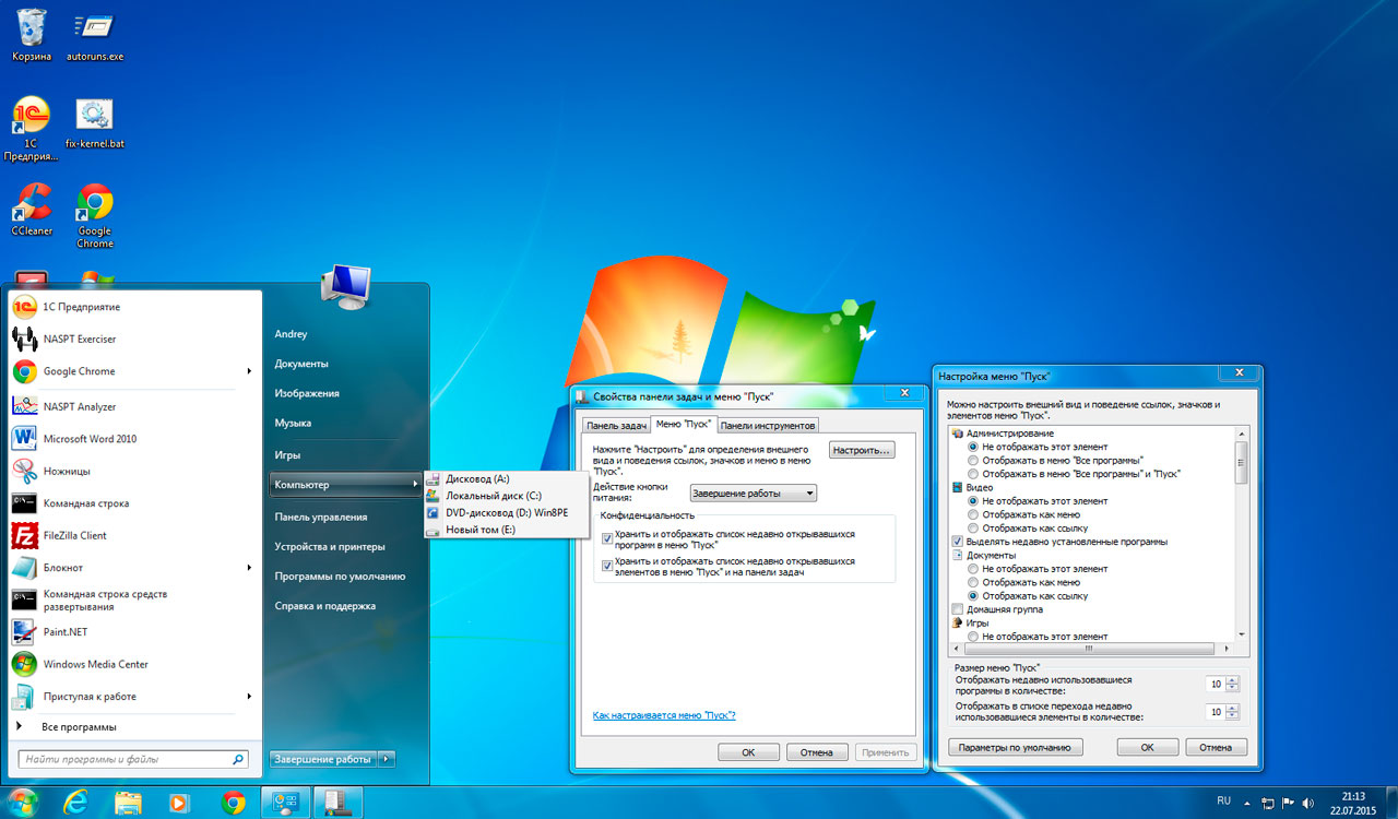 Microsoft вынесла хороший урок из провала Vista, поэтому следующая версия ОС - Windows 7 быстро завоевала популярность сравнимую с успехом Windows XP. Новый выпуск принес много улучшений и в меню Пуск, сделав его еще более удобным. Логическое завершение получила идея с закреплением пунктов в левом столбце меню, теперь закрепить можно любые значки и в любом количестве.