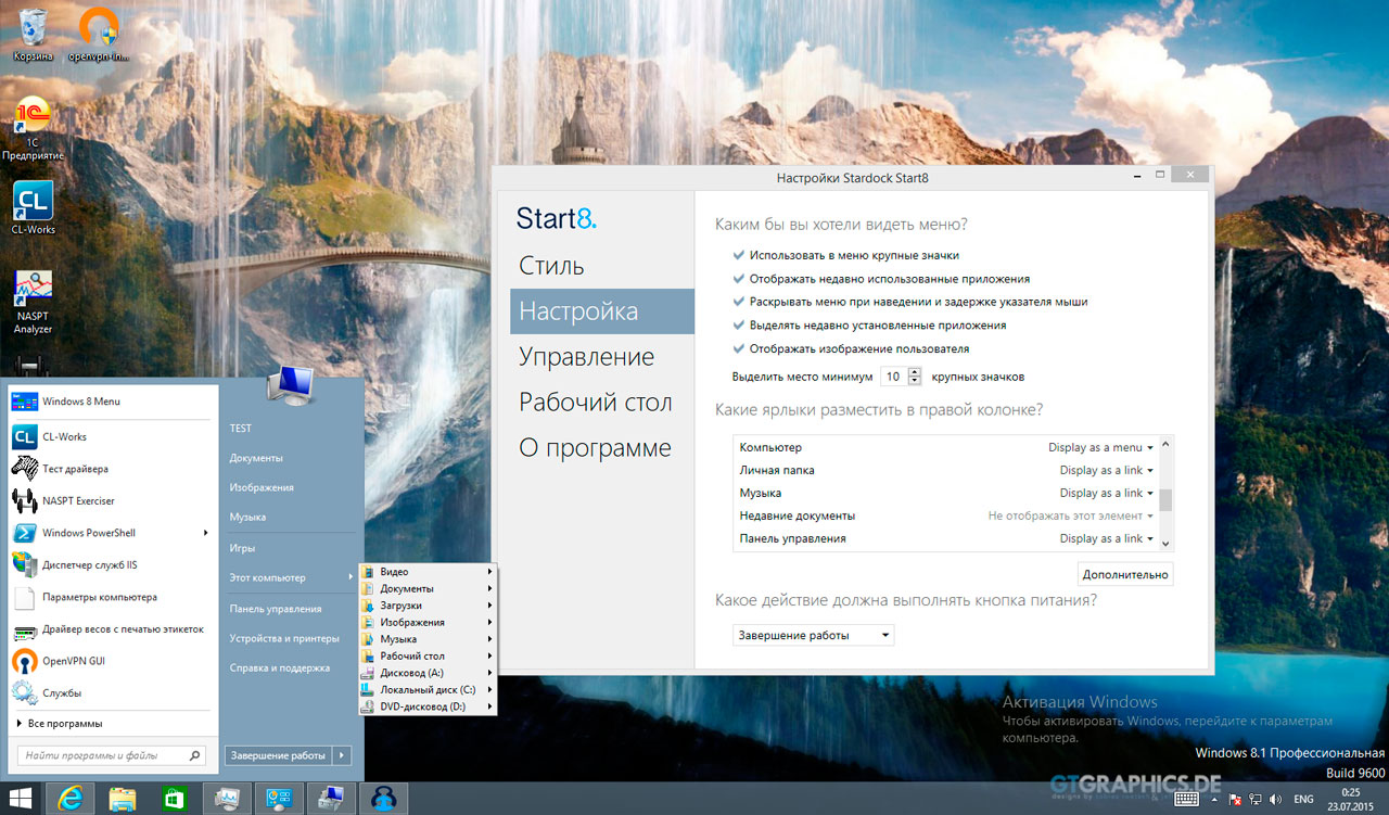 Данные инициативы были встречены, мягко говоря, с непониманием, а на рынке сразу появилась масса утилит, возвращающих назад и кнопку, и меню, а также убирающих с глаз долой все мобильно-планшетные недоразумения. Для примера ниже показана работа утилиты Start8, возвращающей в Windows 8 привычный интерфейс.