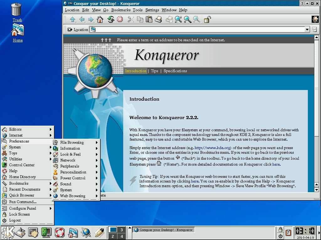 Причем нельзя сказать, что разработчики KDE просто скопировали Пуск из Windows, перед нами вполне самостоятельная рабочая среда, но источник идей разработчиков лежит на поверхности, последние версии KDE только подтверждают это предположение.