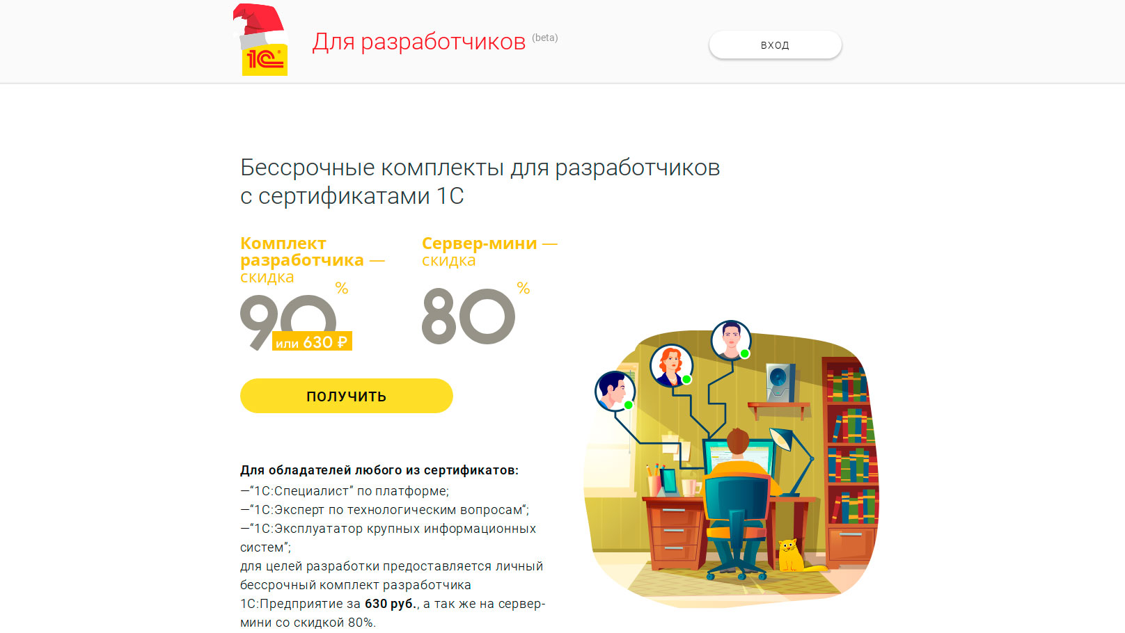 Долгое время у 1С:Предприятия наблюдался некоторый парадокс: несмотря на низкий порог входа в освоение разработки на этой платформе этот самый порог мог оказаться неожиданно высоким по причине необходимости приобретения необходимых лицензий. Хорошо если вы просто пишете внешние отчеты и обработки, в этом случае будет достаточно лицензии на рабочее место или технологической поставки, но, если вам нужно проверить работу в клиент-серверной среде? Протестировать развертывание? Попрактиковаться в администрировании?
