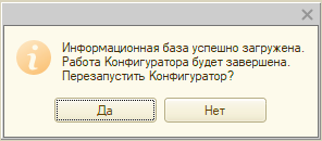 Процесс не займет много времени, по его окончанию от перезапуска Конфигуратора следует отказаться.