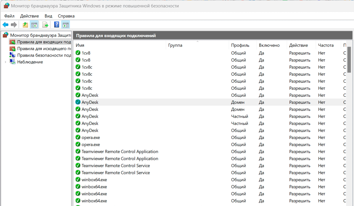 По рекомендациям Microsoft данные правила должны создаваться в трех экземплярах, по одному для каждого профиля, однако не все приложения их соблюдают, например, AnyDesk создает правила согласно рекомендациям, в то время как другие приложения ограничиваются только текущим профилем.