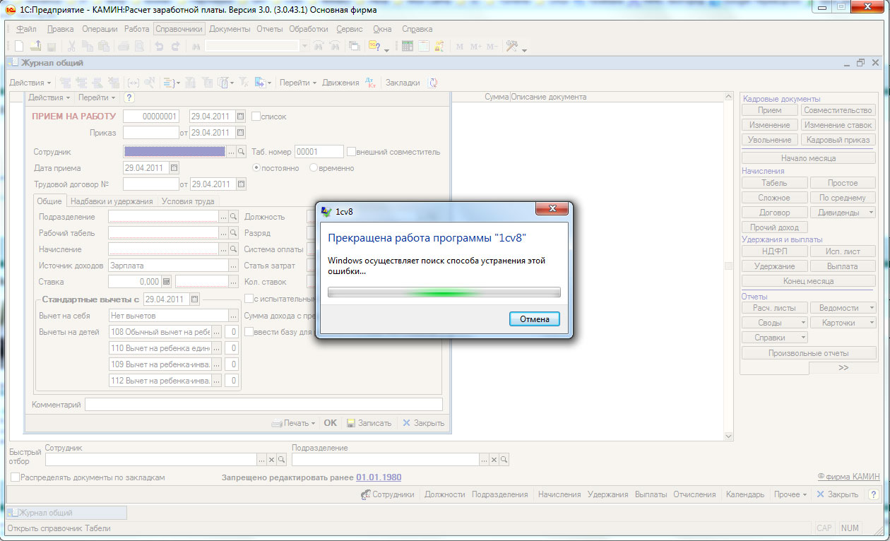 Более пристально наше внимание эта проблема привлекла после анализа обращений в поддержку, когда выявилось большое количество однотипных заявок, закрытых без устранения проблемы. Подлил масла в огонь и перевод Камина 3.0 на платформу 8.2, в ряде случаев этот программный продукт отказывался работать вообще, "падая" с ошибкой после двух-трех кликов мышкой. Аналогичная ситуация сложилась и с конфигурацией "Конвертация данных". Также мы выделили определенное количество инцидентов, когда не удавалось создать информационную базу из шаблона, причем только определенного релиза