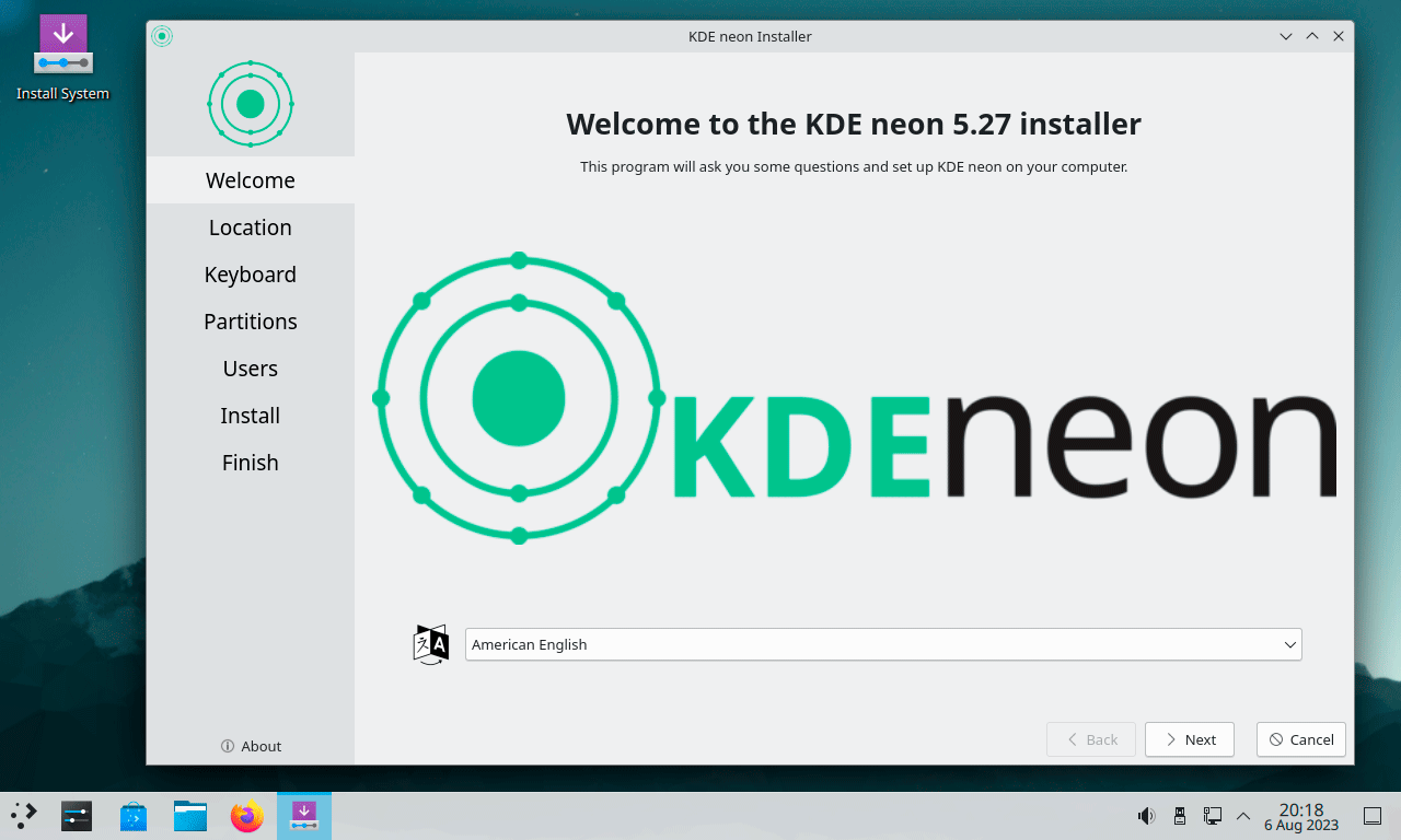 В качестве установщика используется Calamares, которая используется начиная с 2017 года вместо штатной Ubiquity, так как последняя, со слов разработчиков, не содержит некоторых функций.