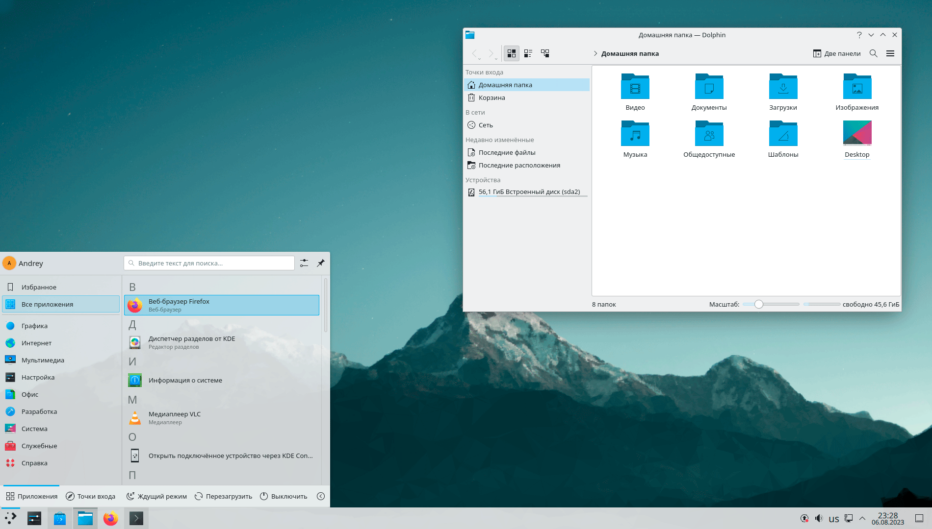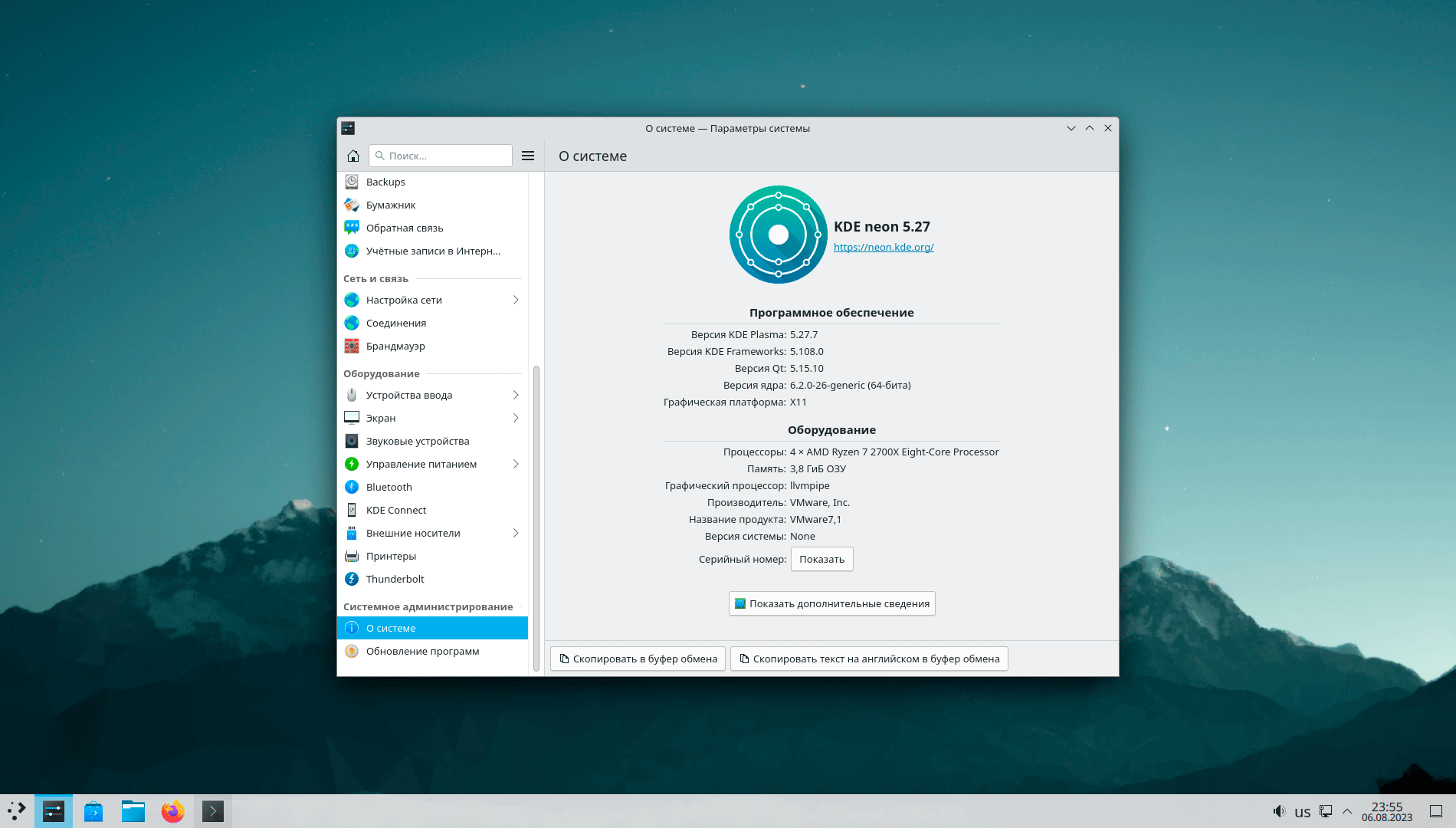 А вот отсутствие предустановленного софта - это скорее большой плюс, нежели минус, так как позволяет гибко настроить систему под собственные потребности. Из коробки присутствуют: браузер Firefox, медиаплеер VLC, текстовый редактор, просмотрщик изображений, магазин, терминал и ряд системных утилит KDE.