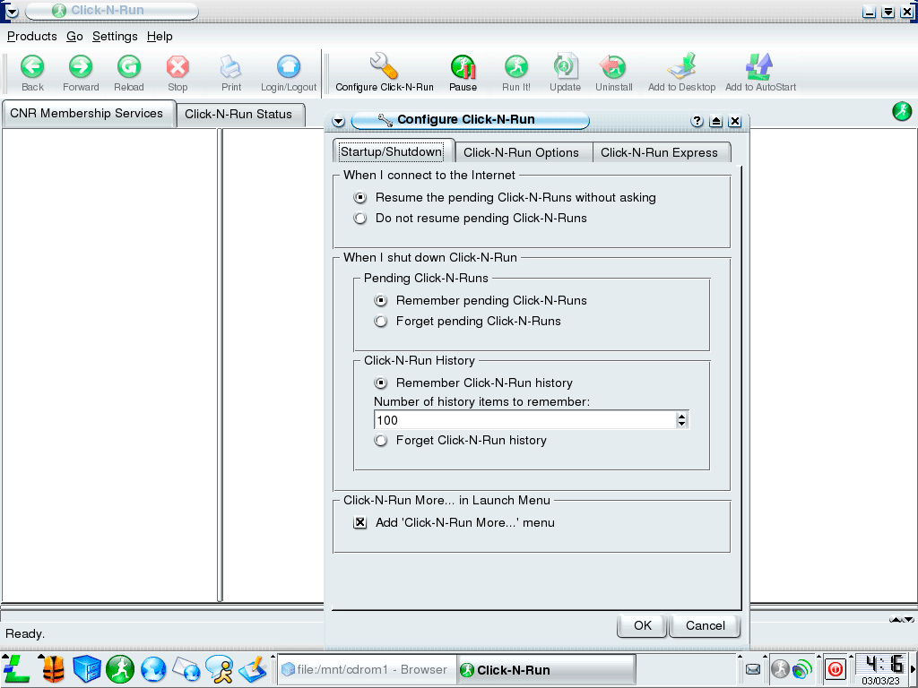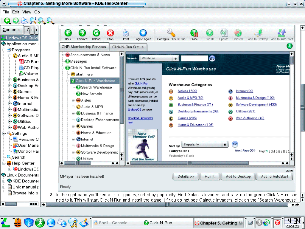В целом идея и ее техническое исполнение для 2003 года выглядит отлично, но, вспомним, что за доступ к Click-N-Run вам потребуется дополнительная подписка в размере 49,95 $ в год, при том, что каталог содержал преимущественно открытое ПО. В частности, в качестве офисного пакета предлагался StarOffice / OpenOffice, в качестве графического редактора Gimp и т.д. и т.п.
