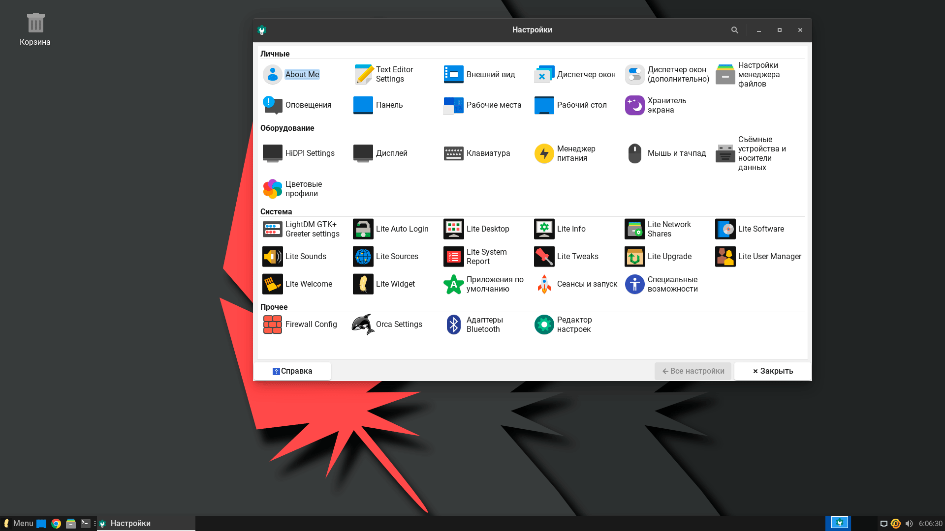 В целом софта в системе немного, но все основные потребности он закрывает, что для легковесной системы правильно, проще самостоятельно поставить то, что нужно, чем вычищать то, что не нужно, особенно владельцам небольших дисков. Для управления системой, кроме стандартных, предлагается набор утилит собственной разработки Lite, которые доступны как в панели настройки, так и из стартового меню.