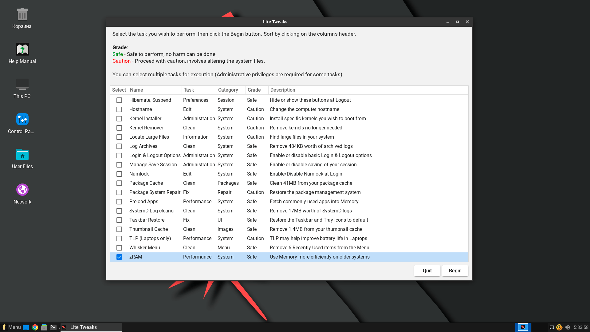 Среди них есть как вообще простенькие утилитки по управлению значками на рабочем столе, так и вполне удобные инструменты для тонкой настройки системы. Так Lite Tweaks поможет удалить ядро, очистить кеш и логи, оптимизировать производительность системы, например, в одно нажатие включить zRAM, что актуально для слабых машин с небольшим количеством оперативки.
