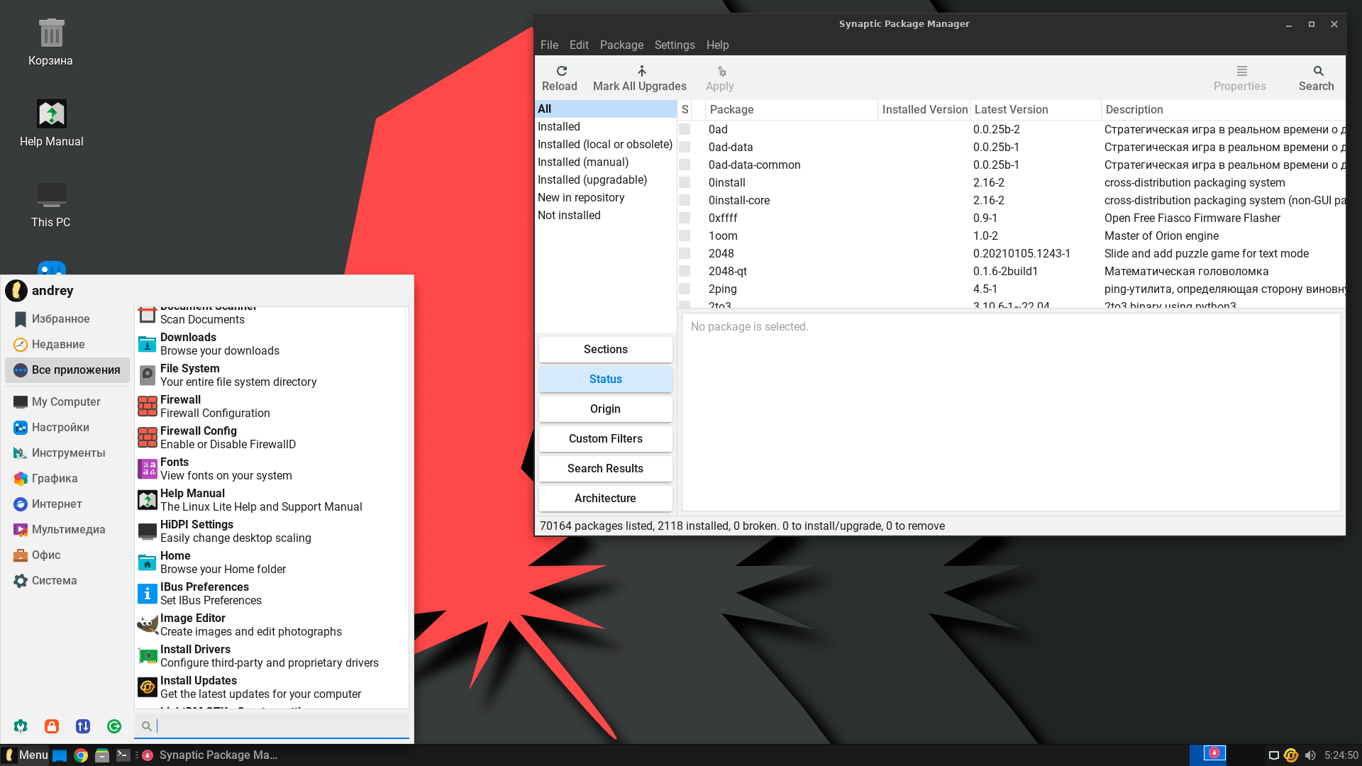 К сожалению, никакого магазина в системе нет и если вам нужно что-то не входящее в приведенный выше список, то вам придется осваивать командную строку или Synaptic, который нельзя назвать дружелюбным для новичков. В целом это беда не только Lite, но и многих других дистрибутивов, порой гораздо более крупных.