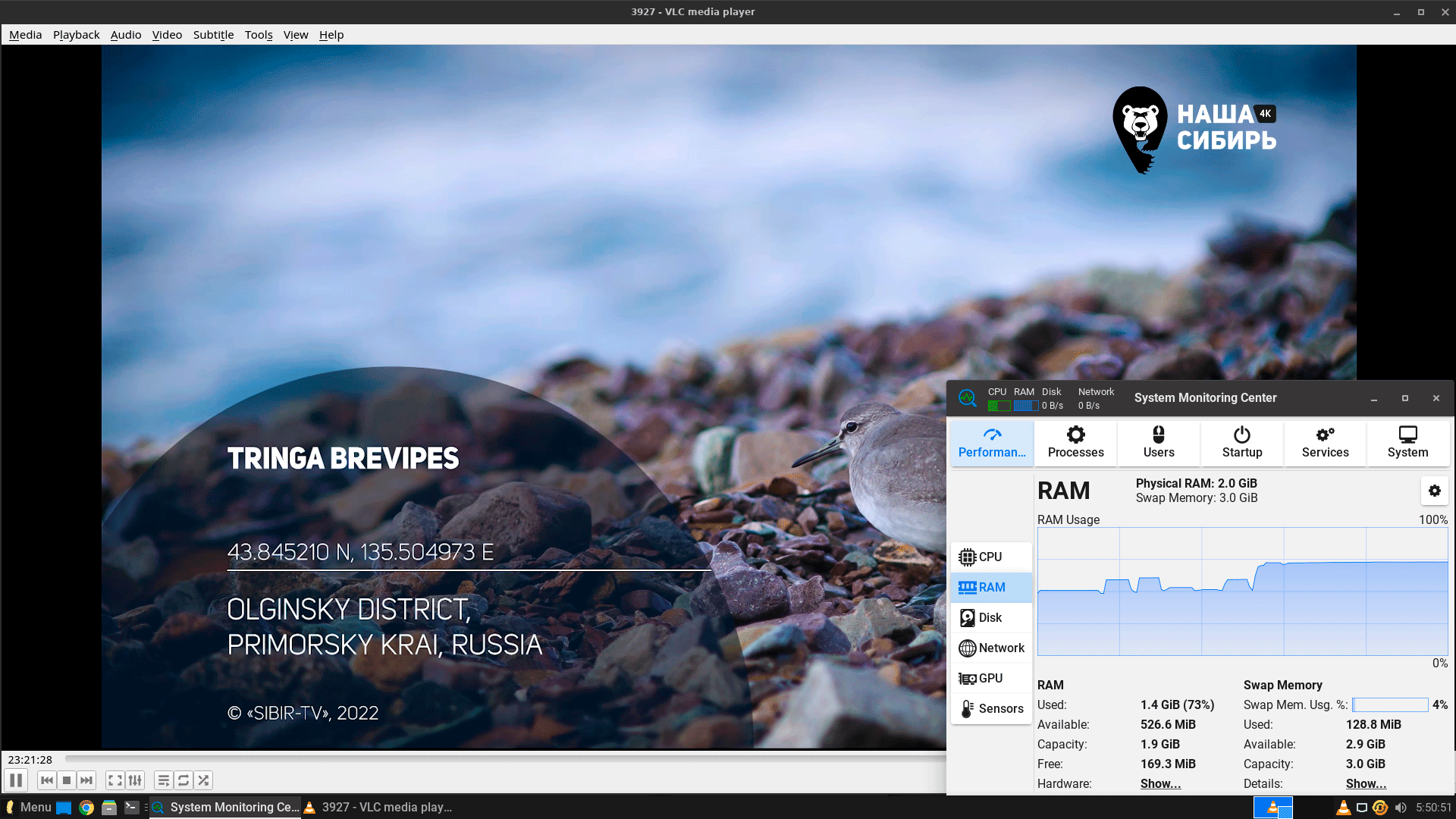 Также мы без каких-либо проблем организовали просмотр 4K потока IPTV через VLC, ресурсов тоже оказалось достаточно. Понятно, что несколько тяжелых задач система по объективным причинам не потянет, но вряд ли кто-то будет на слабом ПК одновременно кодировать видео и смотреть кино в 4K. А при разумном подходе система показывает себя очень неплохо.