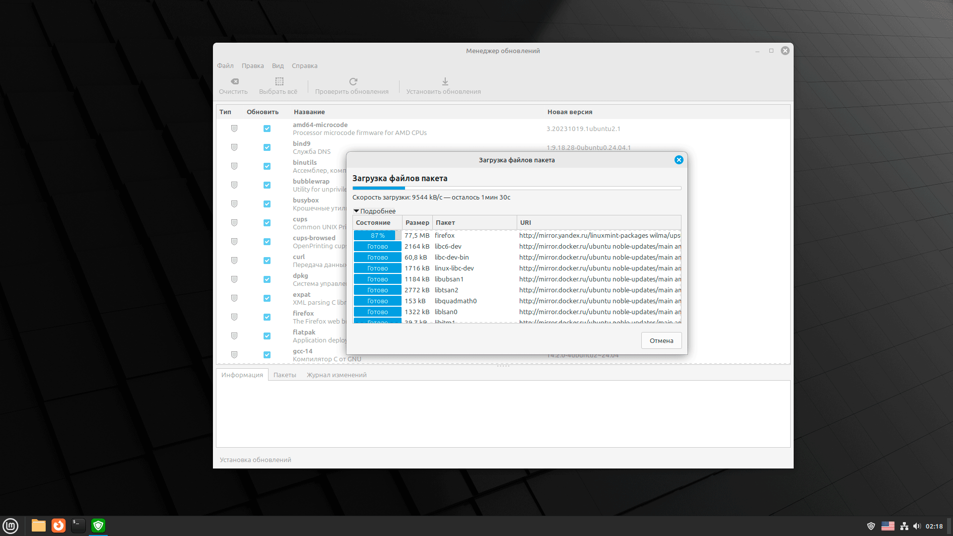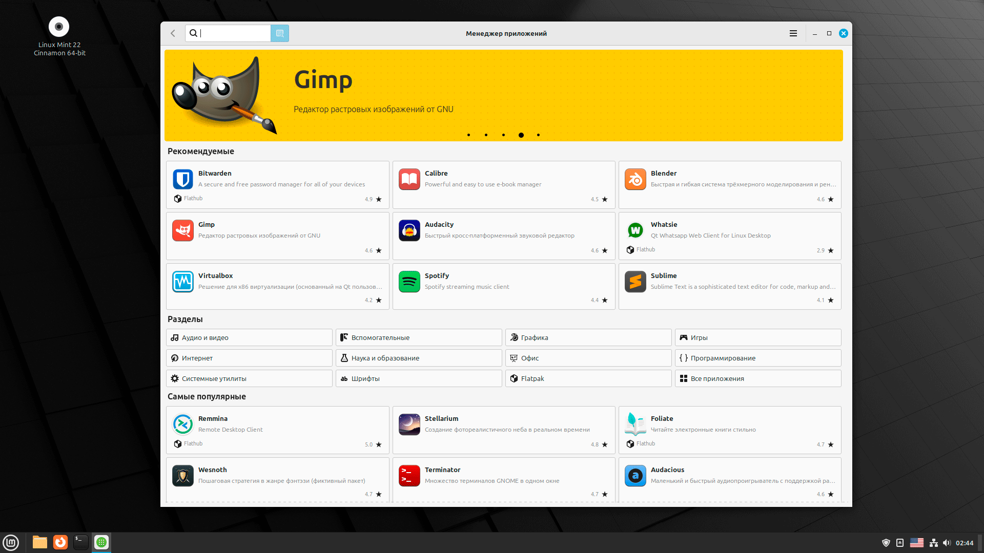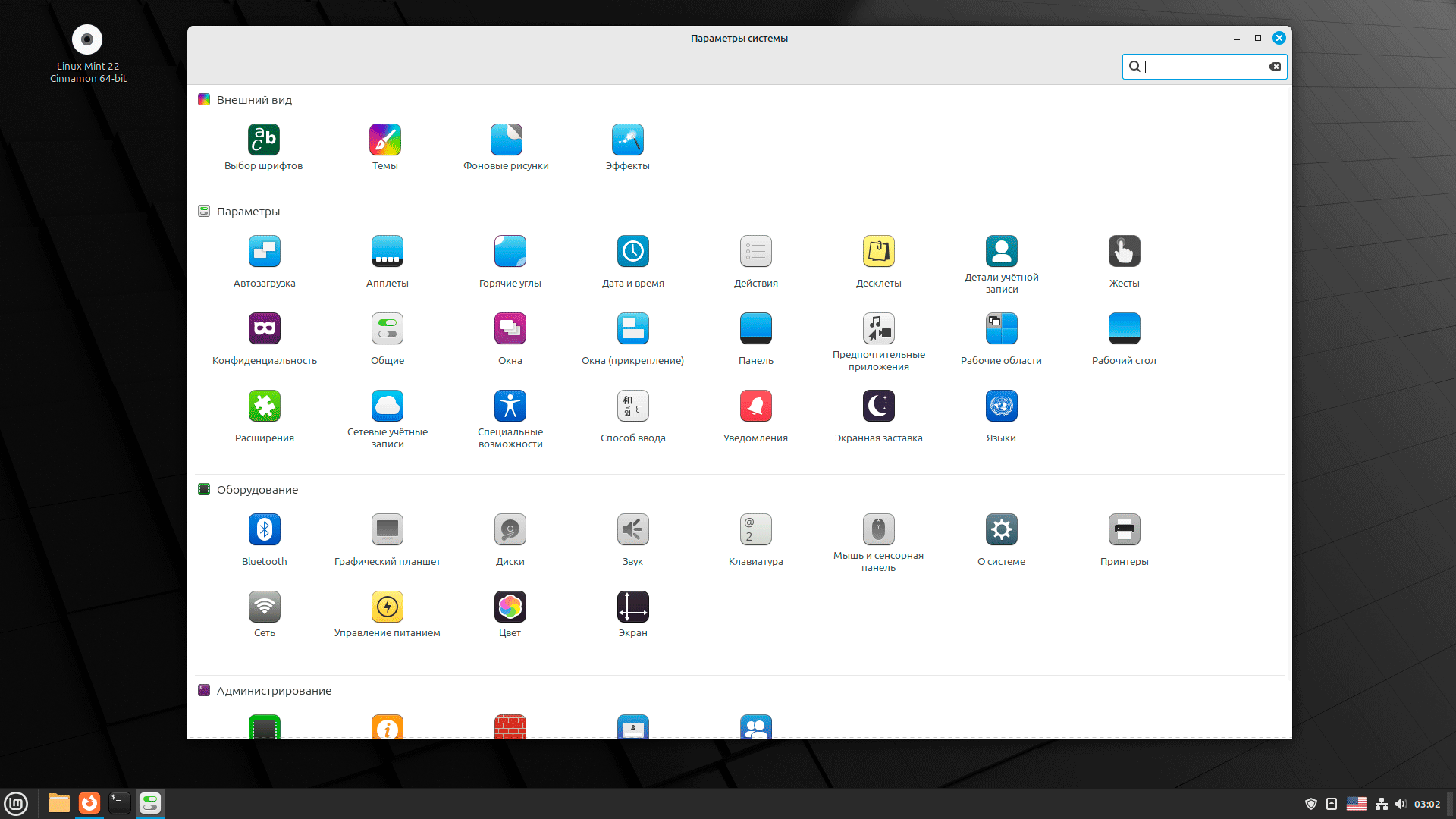 Если заглянуть под капот, то Mint 22 использует пакетную базу Ubuntu 24.04 LTS с ядром 6.8 и оболочку Cinnamon 6.2. На системе с 4 ГБ оперативной памяти работается достаточно комфортно, но следует понимать, что Cinnamon - это форк GNOME и низких системных требований тут быть не может, поэтому 4 ГБ это необходимый минимум.