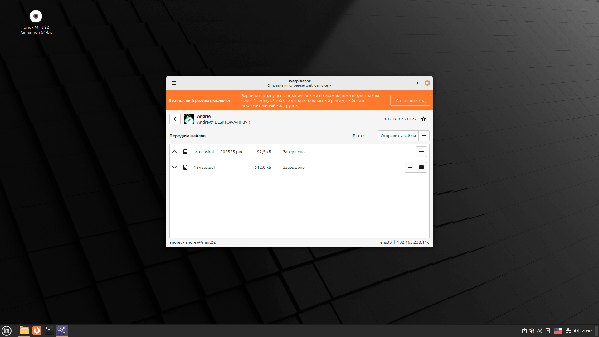Для обмена файлами в пределах локальной сети предлагается Warpinator - оригинальное приложение для обмена файлами на платформах Windows, Linux, Android и iOS в пределах локальной сети. Для сетевой настройки и обнаружения используется Zeroconf, поэтому вам достаточно просто установить приложение, после чего оно само найдет соседей для обмена. Обмен тоже очень прост - достаточно перетащить в окно файл или папку. Просто, удобно, кроссплатформенно. При этом файлы не уходят дальше локальной сети, никаких внешних серверов или облачных хранилищ технология не использует.