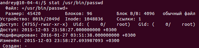 Опции SUID и SGID позволяют любому пользователю запускать файл на исполнение с правами его владельца или группы. Для чего это нужно? В обычных условиях файл запускается с правами текущего пользователя, что не всегда достаточно для его работы. Например, таким образом работает утилита passwd, нам нужно чтобы пользователь имел возможность изменить свой пароль без повышения прав, но данная операция требует прав суперпользователя. Как быть? Использовать признак SUID. Если мы проверим права на утилиту, то увидим запись rwsr-xr-x или 4755.