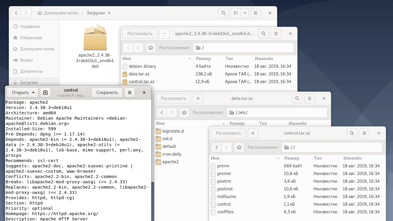 Слова, вынесенные в подзаголовок, знакомы любому пользователю Linux, но не все знают, что именно за ними кроется. Начнем с пакетов. Пакет - это архив специального формата, который содержит все необходимые приложению бинарные и конфигурационные файлы, информацию о том, как их следует разместить в файловой системе, данные о зависимостях пакета, а также список действий которые необходимо выполнить в процессе установки. Вы можете сами открыть любой пакет при помощи архиватора и посмотреть, что у него внутри.
