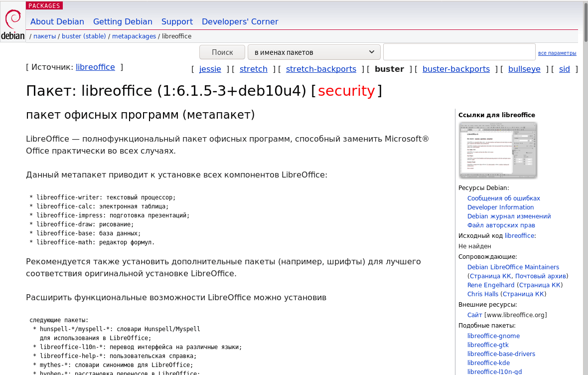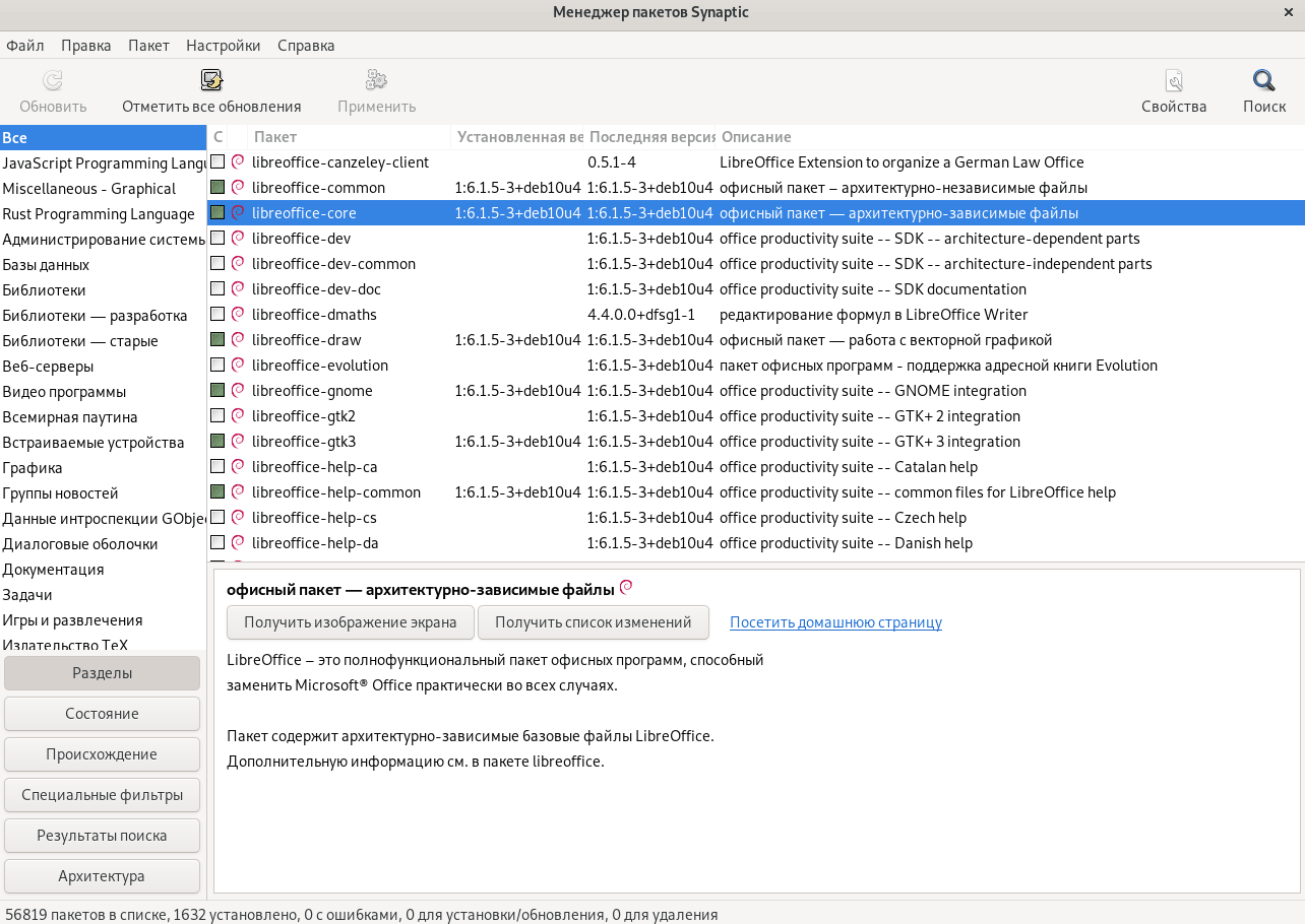 Все это хорошо, скажет иной читатель, только как мне узнать какие именно пакеты мне нужно установить, чтобы получить на выходе полноценный продукт, как разобраться во всем этом обилии непривычных названий? Для этой цели существуют метапакеты. По сути - это пакет пустышка, который в своих зависимостях имеет нужный перечень пакетов для установки готового продукта. Например, если нужен офисный пакет, то достаточно просто установить libreoffice, этот метапакет по зависимостям подтянет и установит все необходимые компоненты для полного набора офиса, каким вы его привыкли видеть. Хотя никто не мешает установить самому только нужные компоненты, скажем только LibreOffice Calc.
