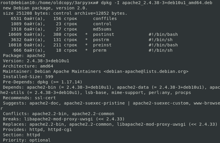 Данная утилита обычно используется для установки пакетов, скачанных вручную, например, коммерческого ПО. Синтаксис ее довольно прост и легко запоминается. Прежде всего полезно получить информацию о пакете, чтобы узнать его зависимости и возможные конфликты, для этого выполните: