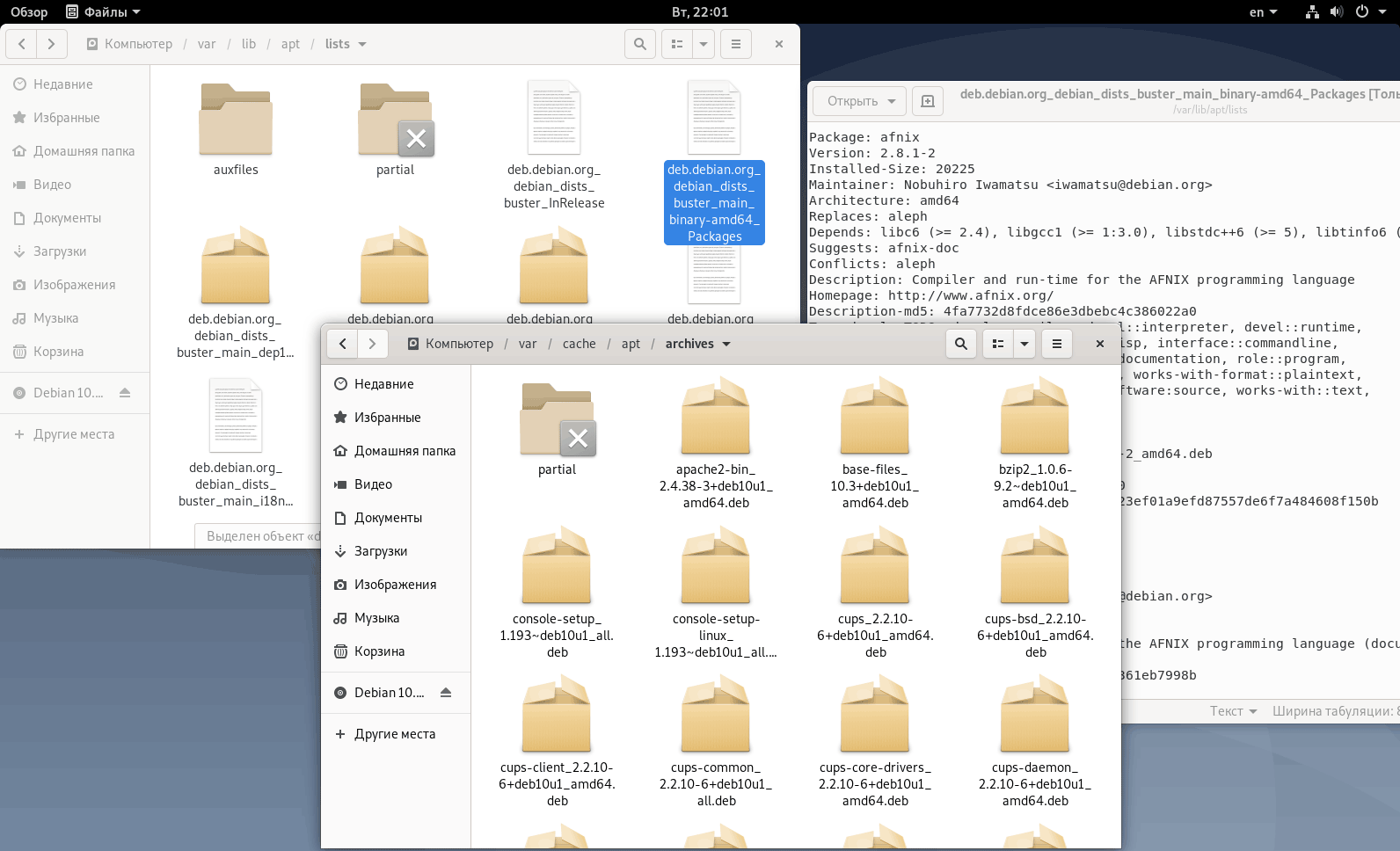 Как мы уже говорили, списки репозиториев хранятся в /etc/apt/sources.list, но они не содержат сведений о пакетах, чтобы их получить нужно скачать из репозитория список находящихся в нем пакетов. Понятно, что каждый раз скачивать списки - плохая идея, поэтому APT хранит локальный кеш пакетов в /var/lib/apt/lists, также копии всех скачанных пакетов сохраняются в /var/cache/apt/archives, что позволяет предотвратить их скачивание в случае повторной установки.