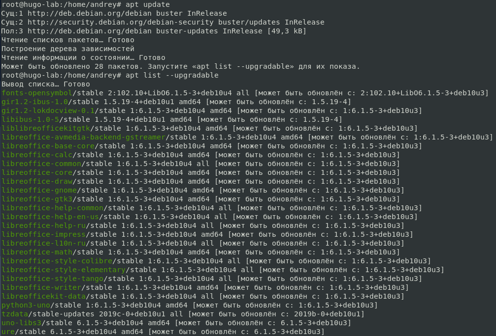 Команда проверяет версии списков в репозитории и при необходимости скачивает их новые версии, после чего анализирует список установленных пакетов и сообщает о доступных обновлениях, увидеть список пакетов, для которых доступны обновления можно командой: