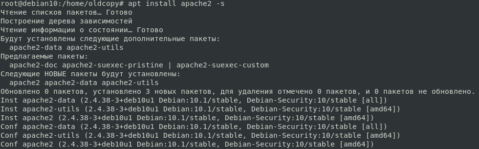 Также иногда бывает нужно проверить что произойдет при установке пакета без его установки, особенно если у нас есть подозрения, что мы можем что-то сломать в системе. Для этого запустите команду установки с ключом -s: