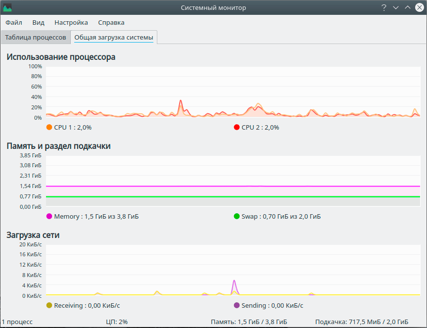 Управление памятью - сложная тема, поэтому мы будем использовать максимально упрощенную модель, достаточную для понимания происходящих процессов. Начнем с памяти приложений, это просто и понятно - при запуске приложение загружает в память собственный код, код связанных библиотек, обрабатываемые данные. Именно этот объем памяти мы видим, как занятый в простых утилитах, таких как Системный монитор.
