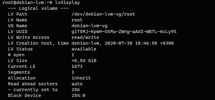 А теперь посмотрим информацию о логическом томе: