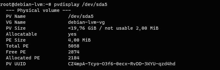 1pvdisplay /dev/sda5
