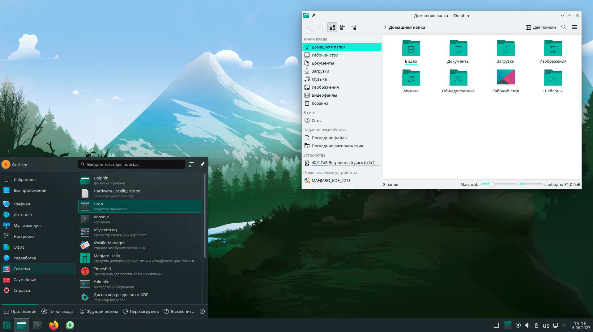Для управления системой предлагается стандартная KDE-утилита Параметры системы в которую встроены функции Менеджера настроек Manjaro, это позволяет выполнять все настройки из одного места, не бегая по разным утилитам и инструментам.