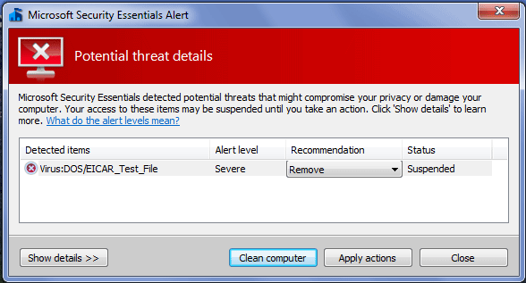 По результатам тестирования AV-Test.org Security Essentials занял четвертое место, обнаружив 97,8% предложенных вирусов. Результат более чем серьезный и говорит о том, что продукт способен составить серьезную конкуренцию ведущим производителям антивирусного ПО.