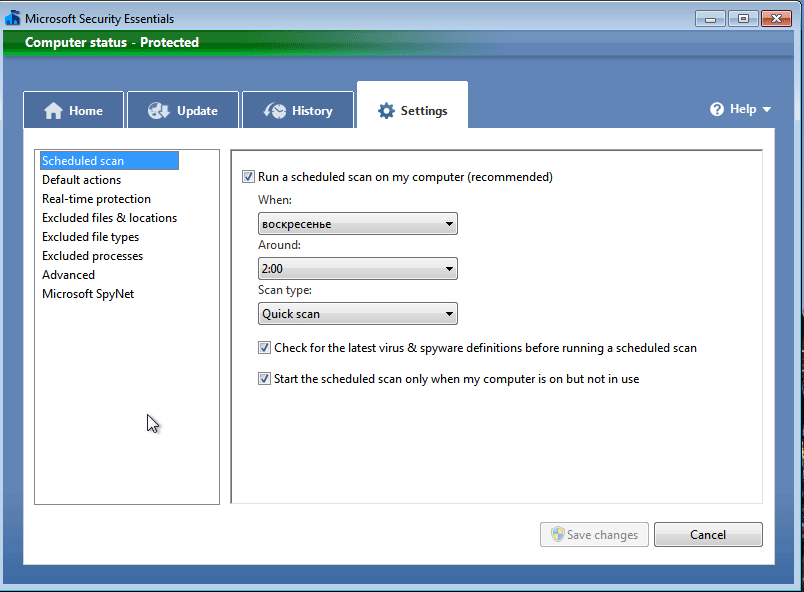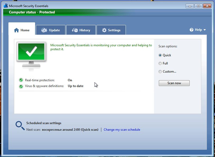 Сканирование по расписанию можно запускать только тогда, когда компьютер простаивает. Переоценить эту возможность трудно, ведь запуск антивирусного сканирования в процессе работы может быть довольно неприятным сюрпризом. Microsoft Security Essentials вполне способен подождать, пока вы завершите работу и только тогда приняться за выполнение задачи.