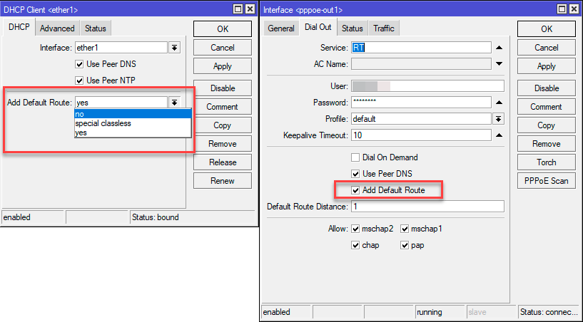 Прежде всего вам потребуется отключить динамическое добавление маршрутов, которое используется при создании коммутируемых подключений, например, PPPoE или DHCP: