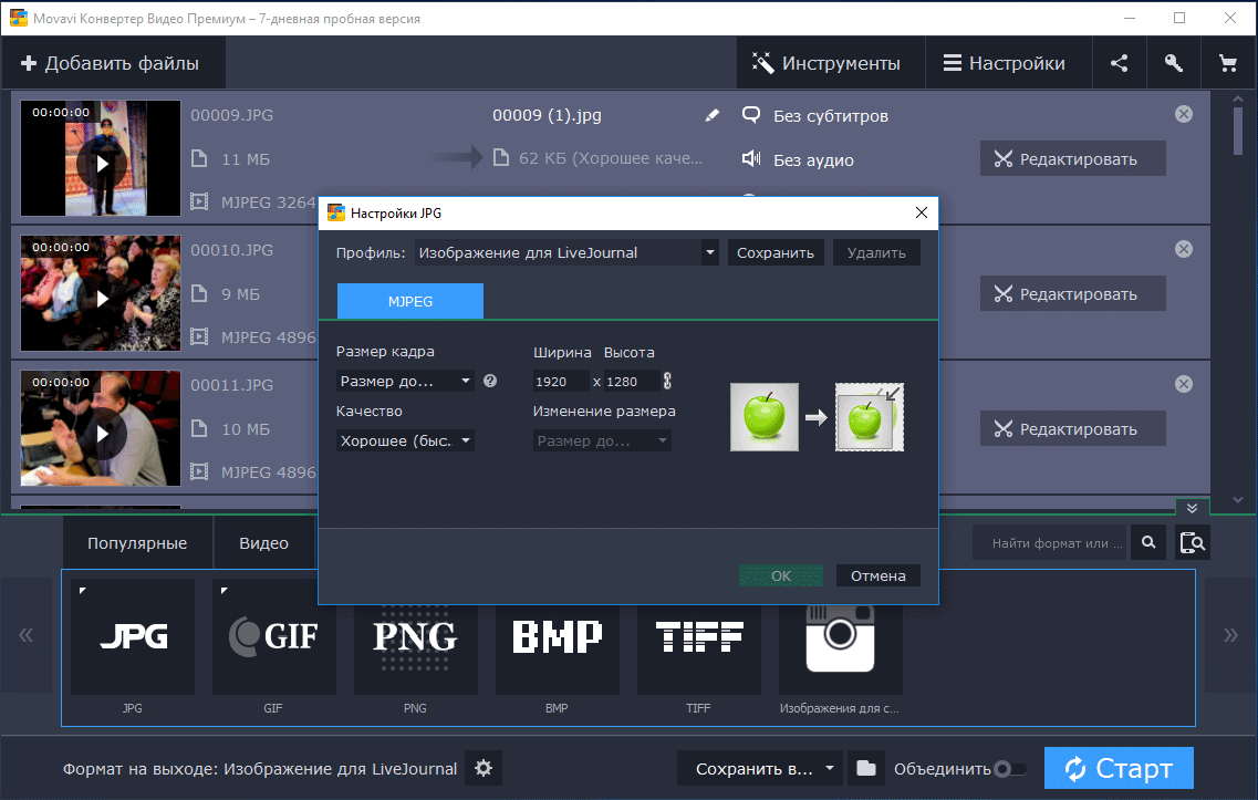 Но это еще не все, кроме работы с видео конвертер работает также и с изображениями. С его помощью весьма просто выполнить одну из самых востребованных операций - пакетно изменить размер фотографий для выкладывания на веб-ресурсе.