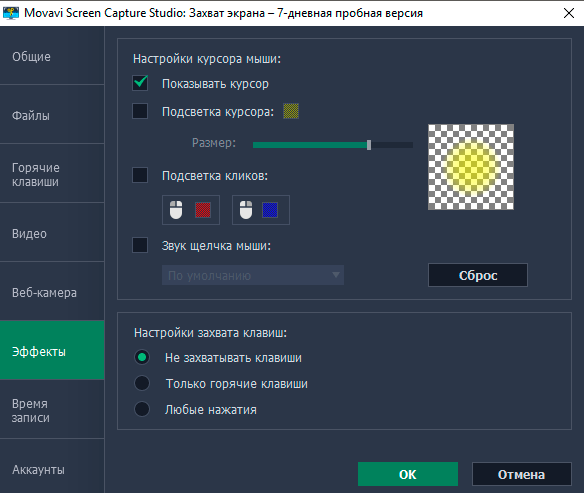 Все готово? Начинаем! Хотя нет, не спешите, а загляните предварительно в настройки, там можно найти много интересного, например, подсветку действий мышью или захват нажатия горячих клавиш.