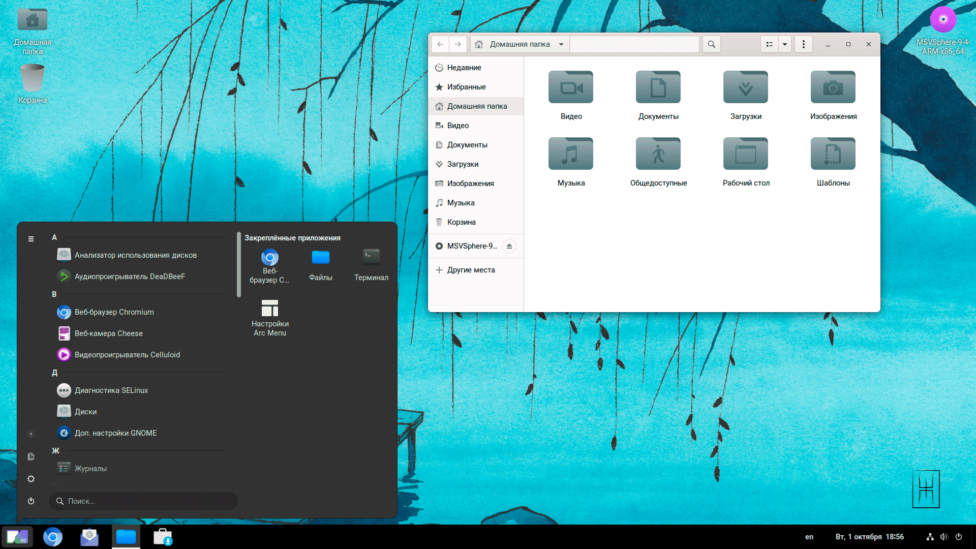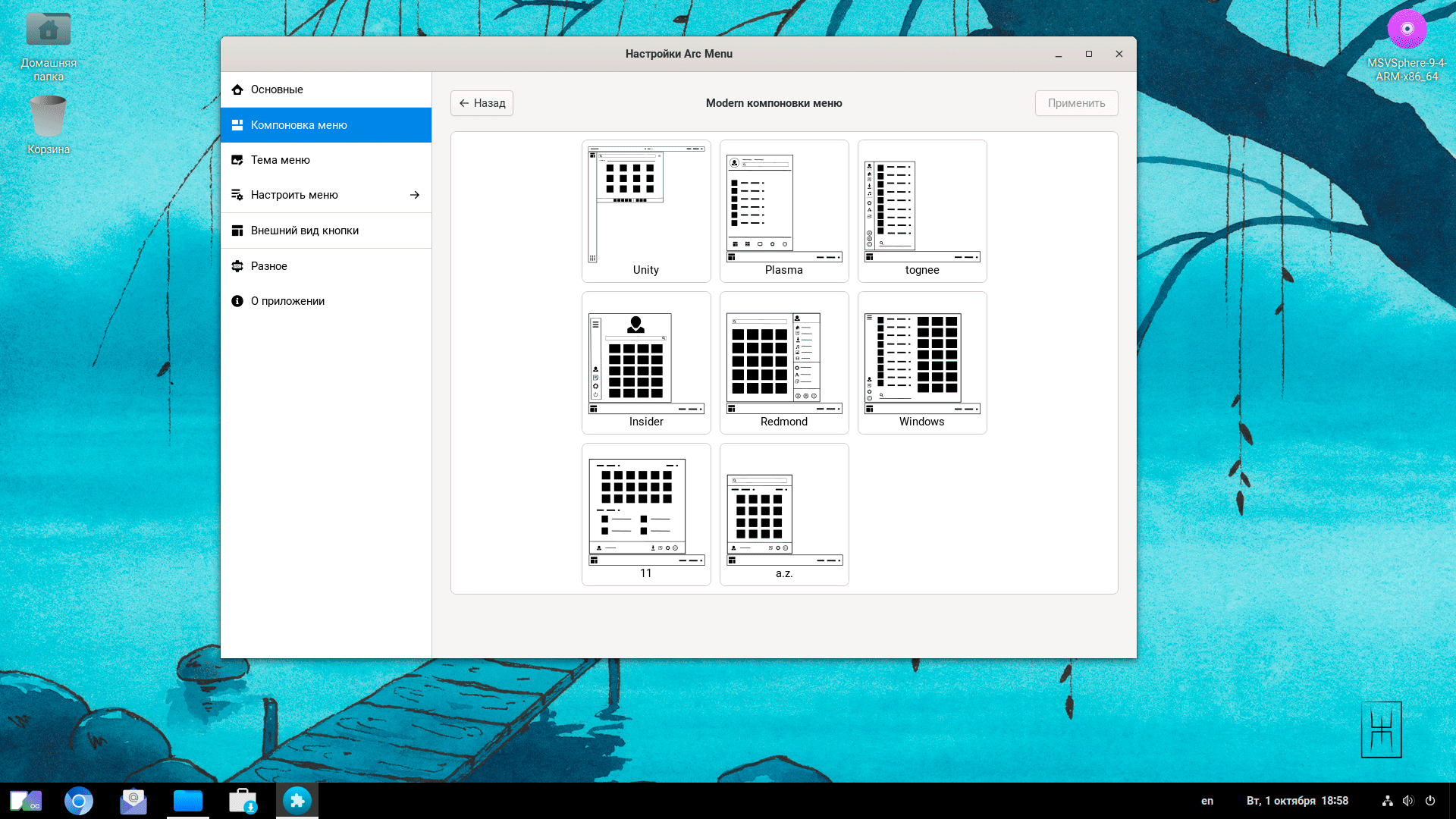 Что нас ожидает внутри? Оболочка графического стола GNOME 40 с альтернативным меню Arc Menu.
