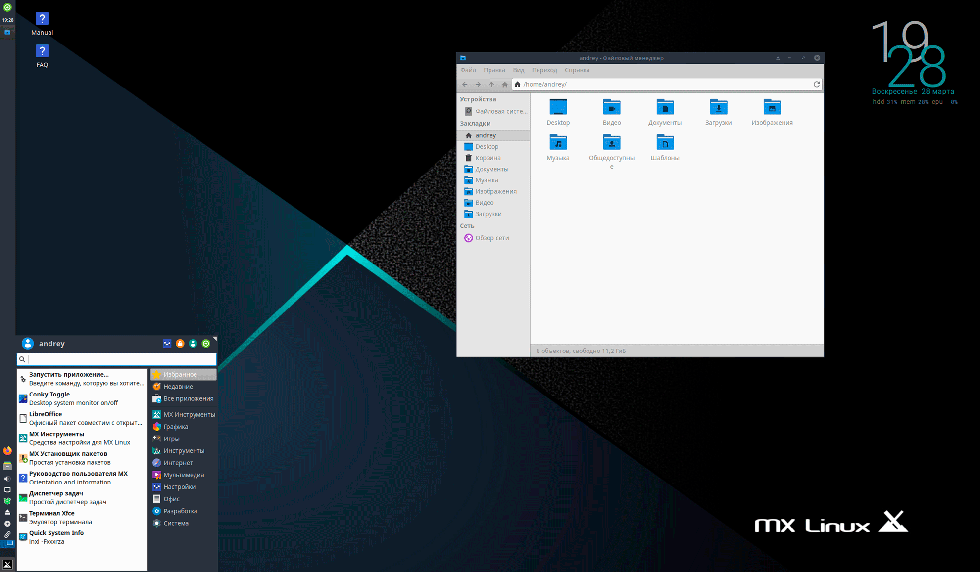Вообще, работая с MX Linuх основные ощущения - это классическая стабильность Debian и потрясающая отзывчивость при весьма современном графическом окружении. Системой пользоваться просто приятно, в том числе визуально.