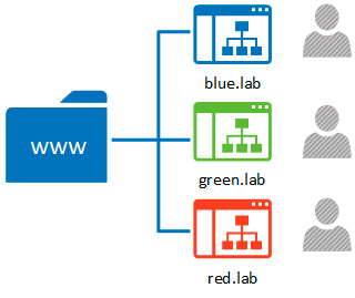 Важное замечание, в данной схеме все сайты должны работать от имени веб-сервера (www-data), если вы используете запуск каждого сайта от имени своего (реального) пользователя, то вам лучше настроить FTP-сервер для работы с реальными пользователями или дополнительно обеспечить нужные права доступа для виртуальных пользователей, что может представлять из себя нетривиальную задачу.