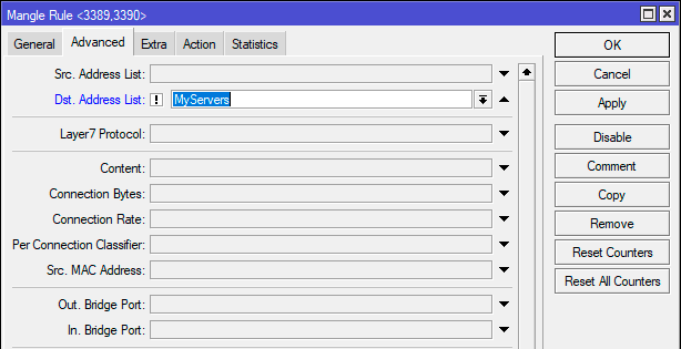 3 chain=forward dst-address-list=!MyServers dst-port=3389,3390 \